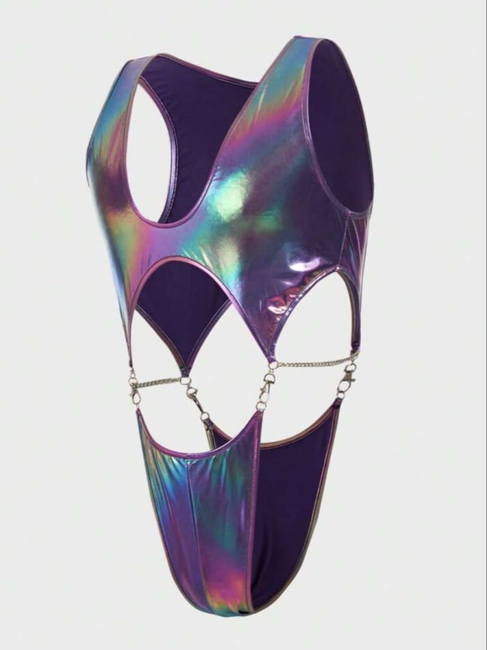 Men's Slim Fit Hollow Out Sexy Chain Decor Bodysuit