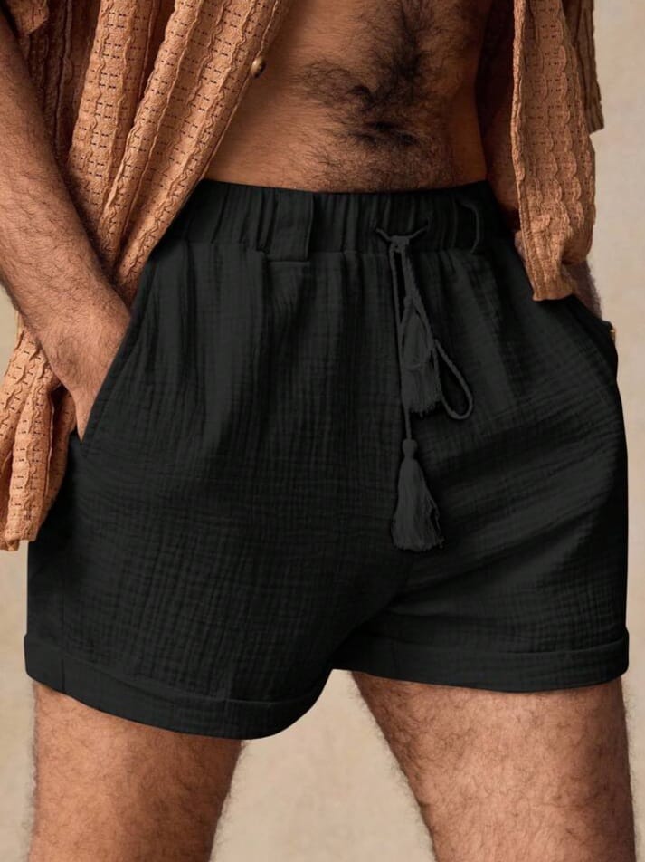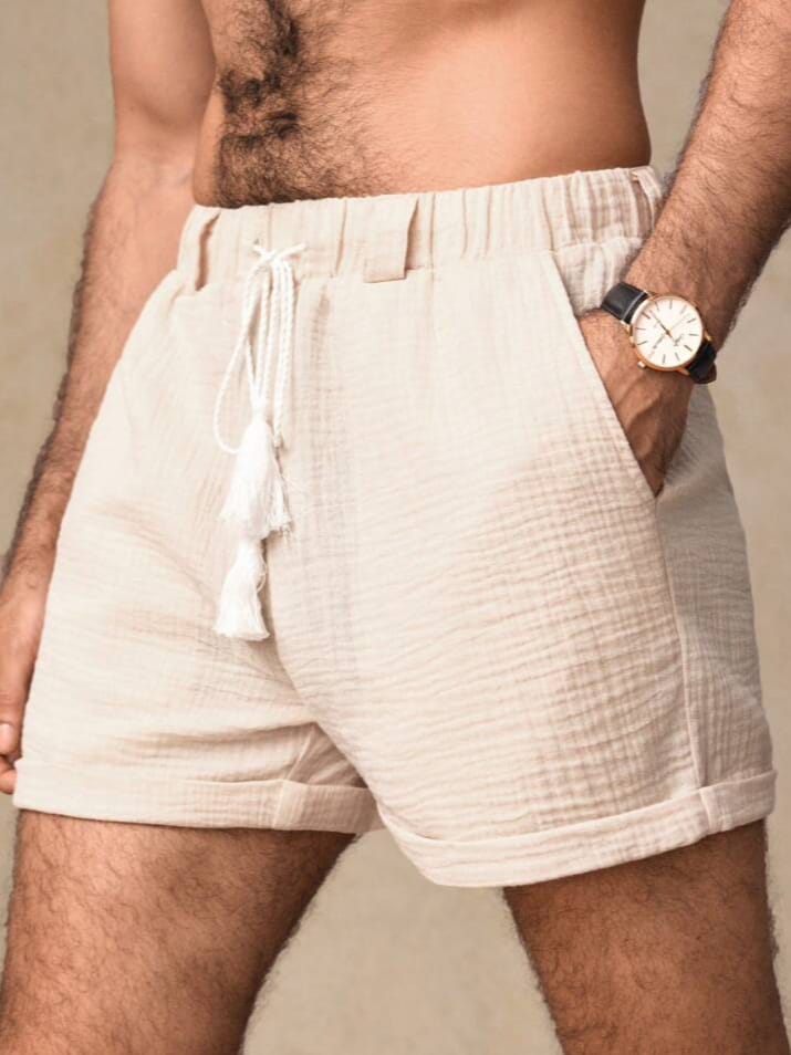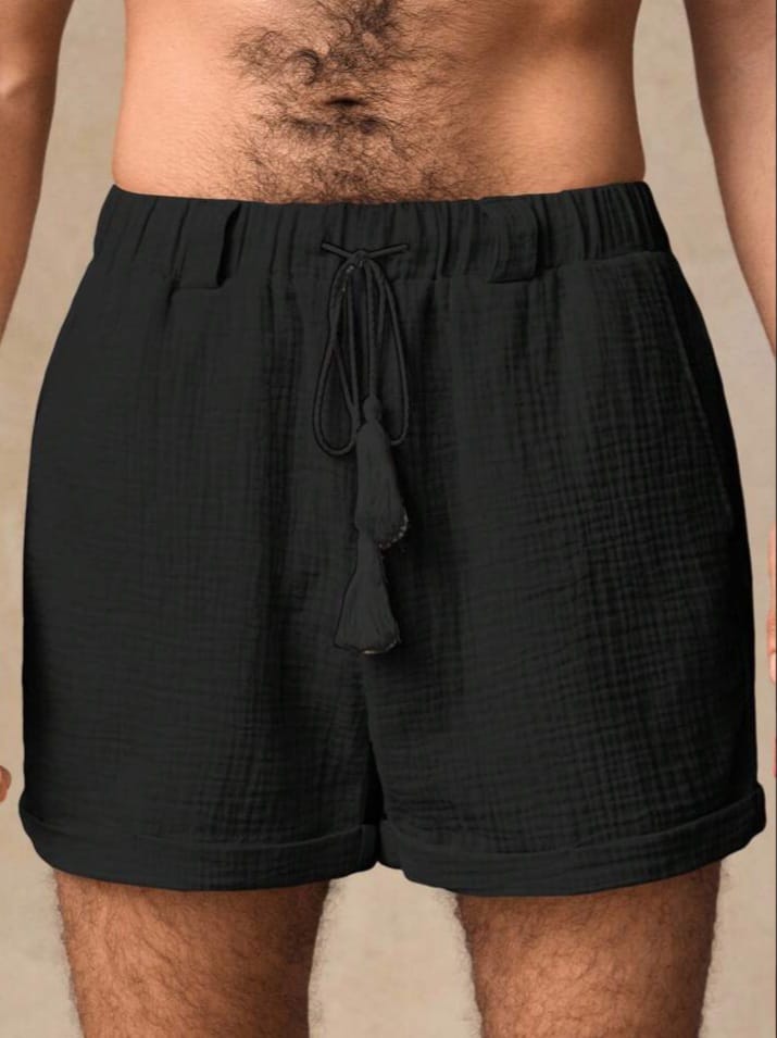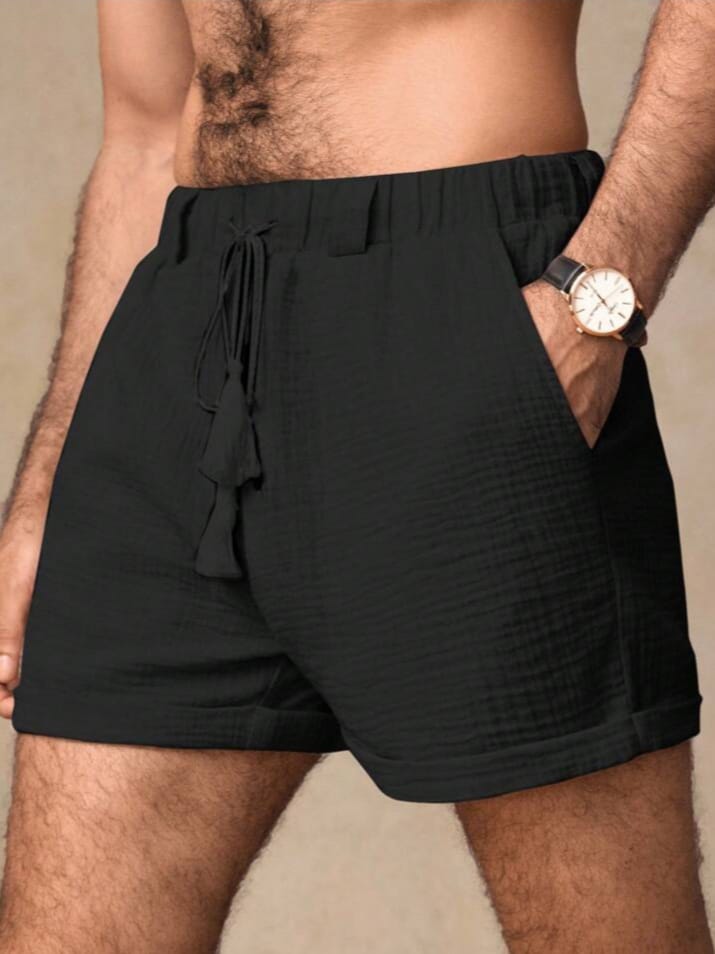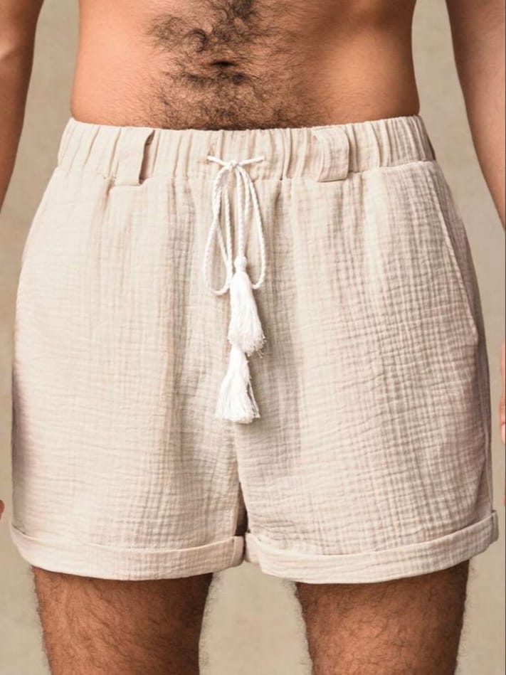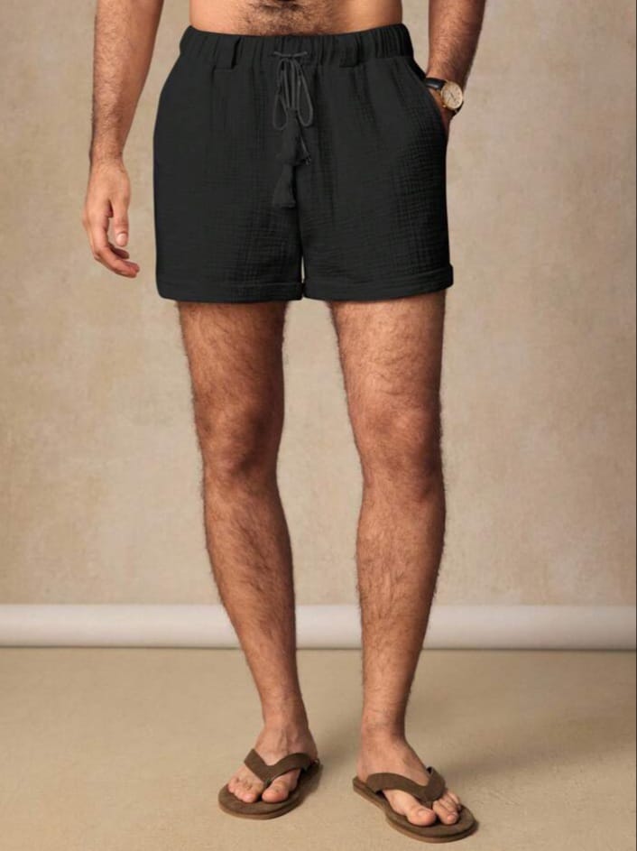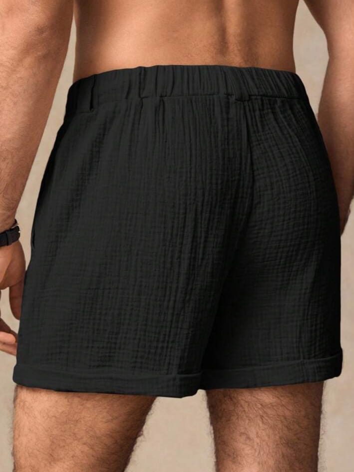 Men Woven Double Layer With Belt Loops Crinkle Fabric Shorts