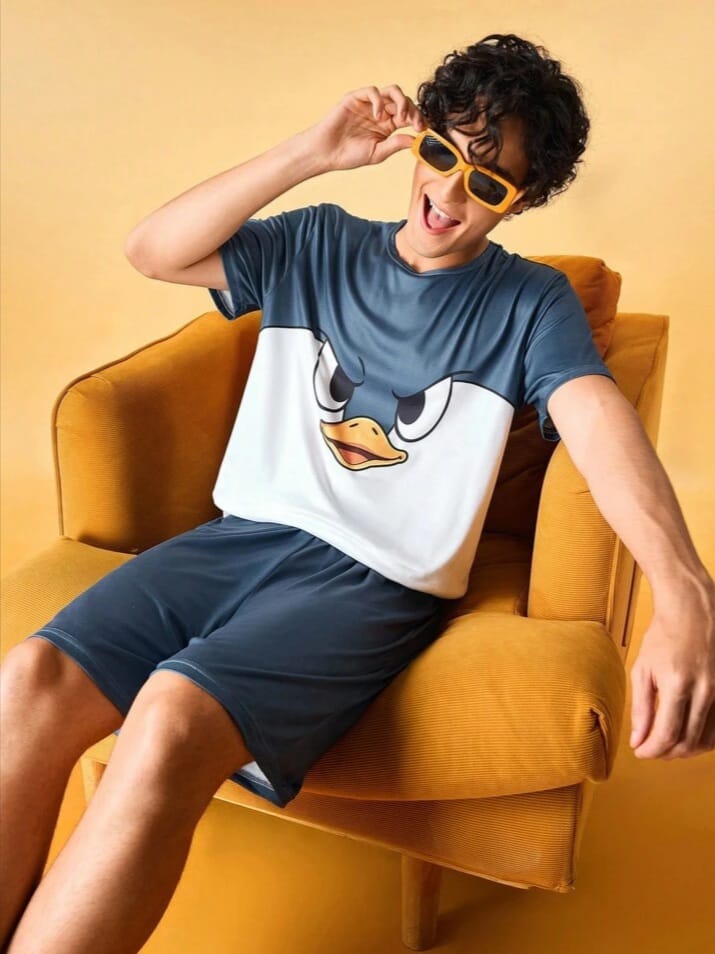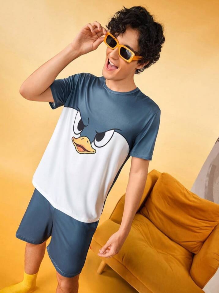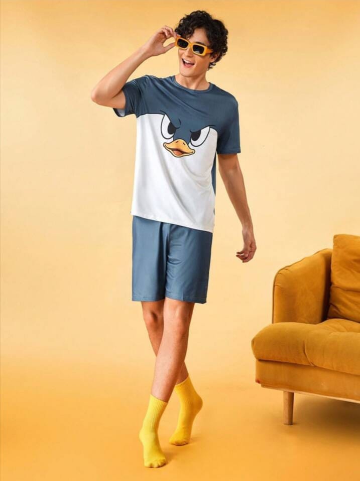 Men's Funny Penguin Graphic Print T-Shirt Pajama Sleepwear Set