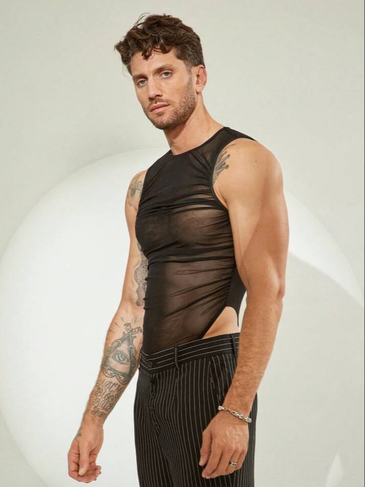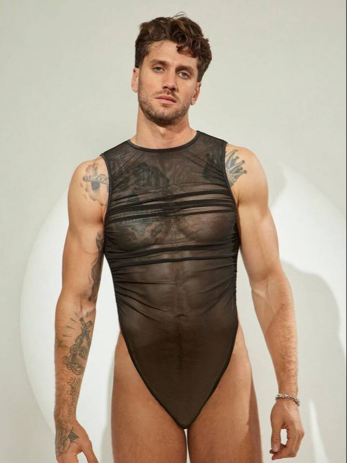 Men's Mesh Sheer Sexy Round Neck Sleeveless Bodysuit