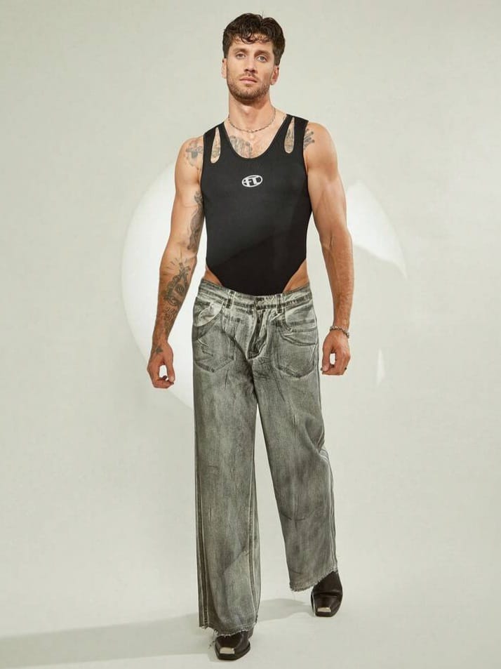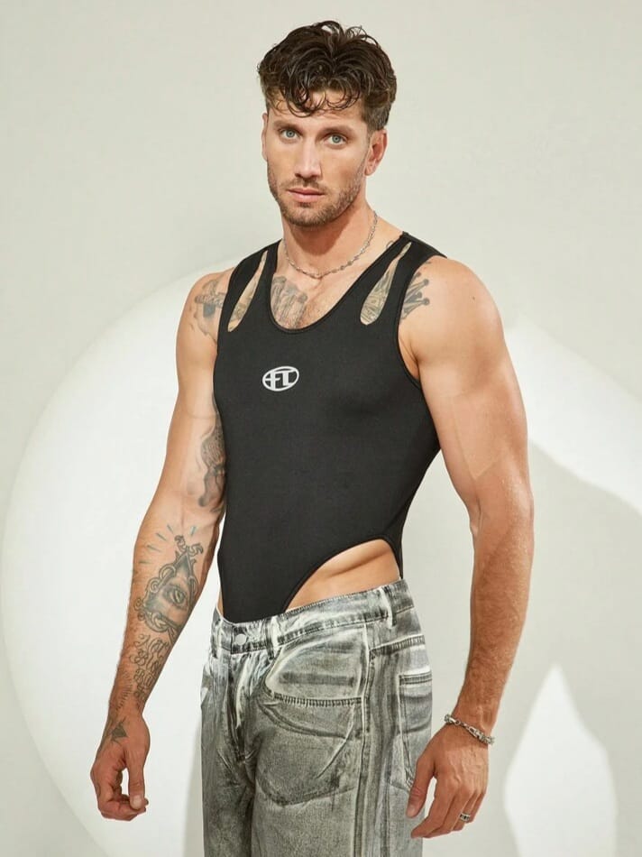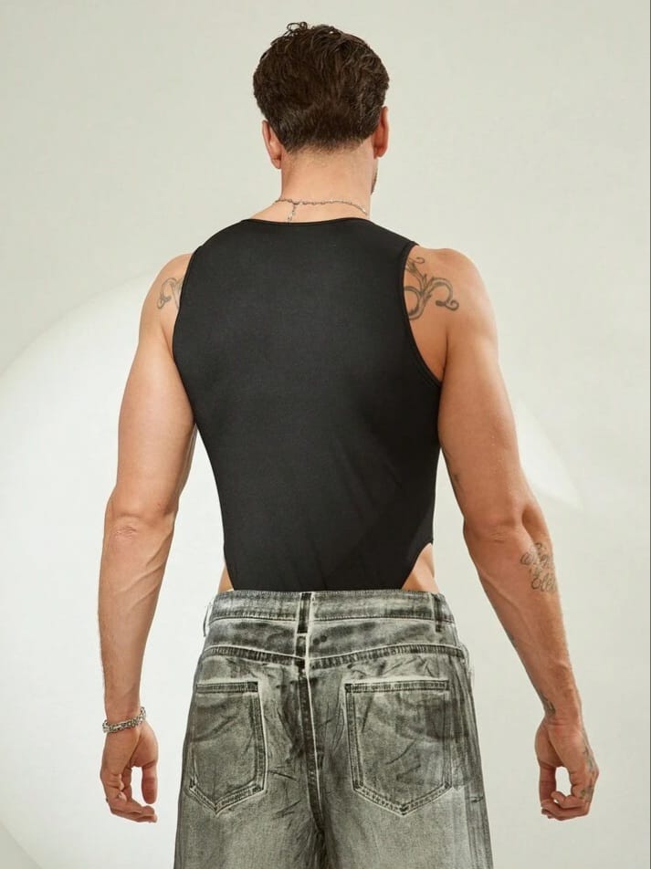 Men's Sleeveless Printed Sexy Hollow-Out Bodysuit