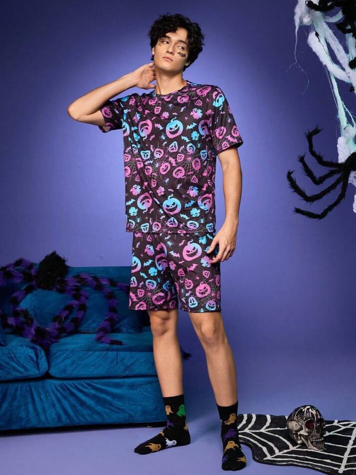 Halloween Colourful Pumpkin, Demon, Ghost Face Glow-In-Dark Y2K Sleepwear Set