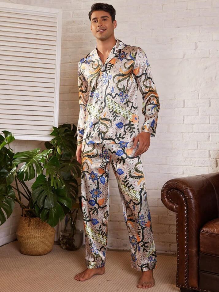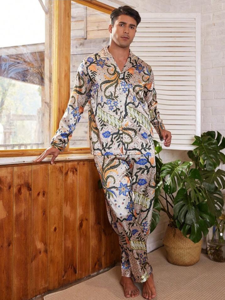 Men's Pajama Set Casual Long Sleeve Shirt & Long Pant Sleepwear Set