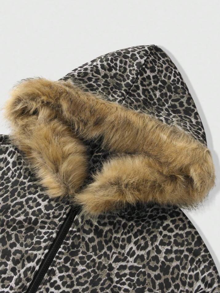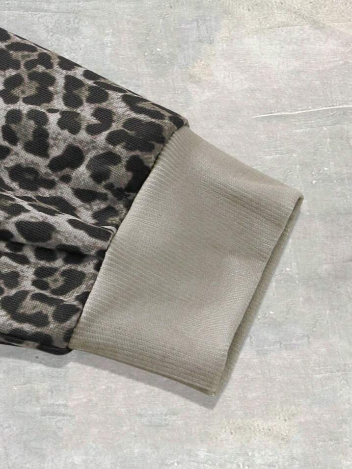 Men's Leopard Pattern Soft Feather In Collar Zipper Hoodie