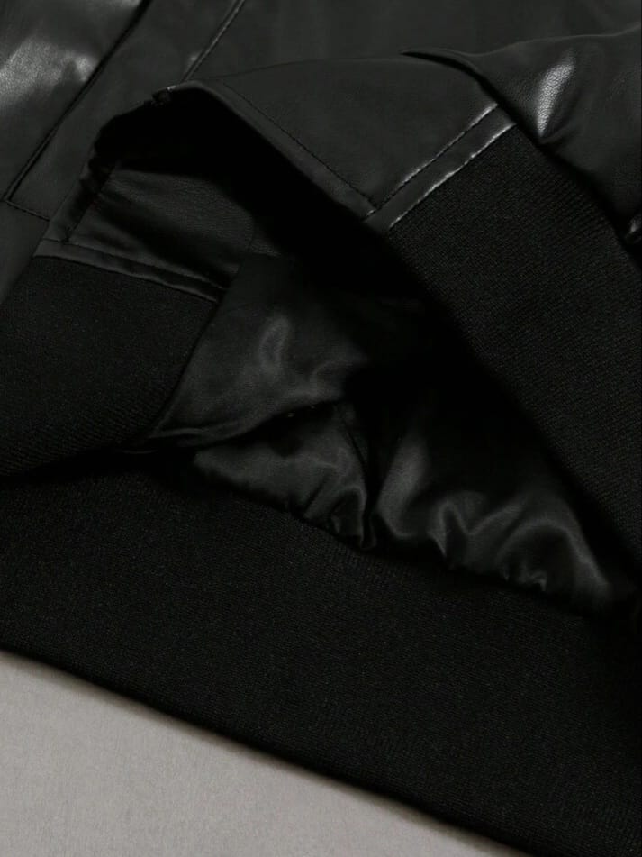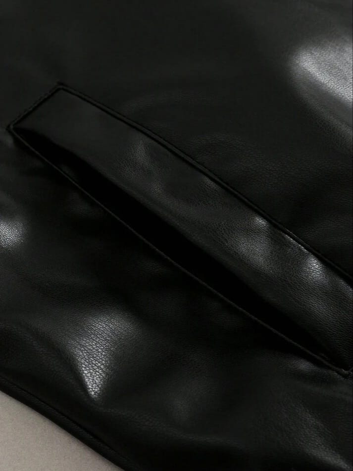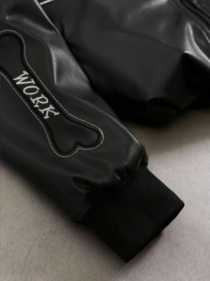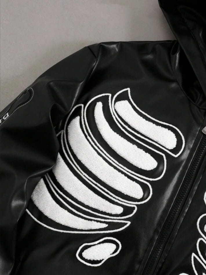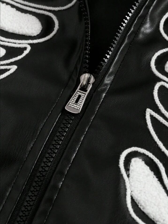 Gothic Skeleton Embroidered Zip-Up PU Leather Hoodie